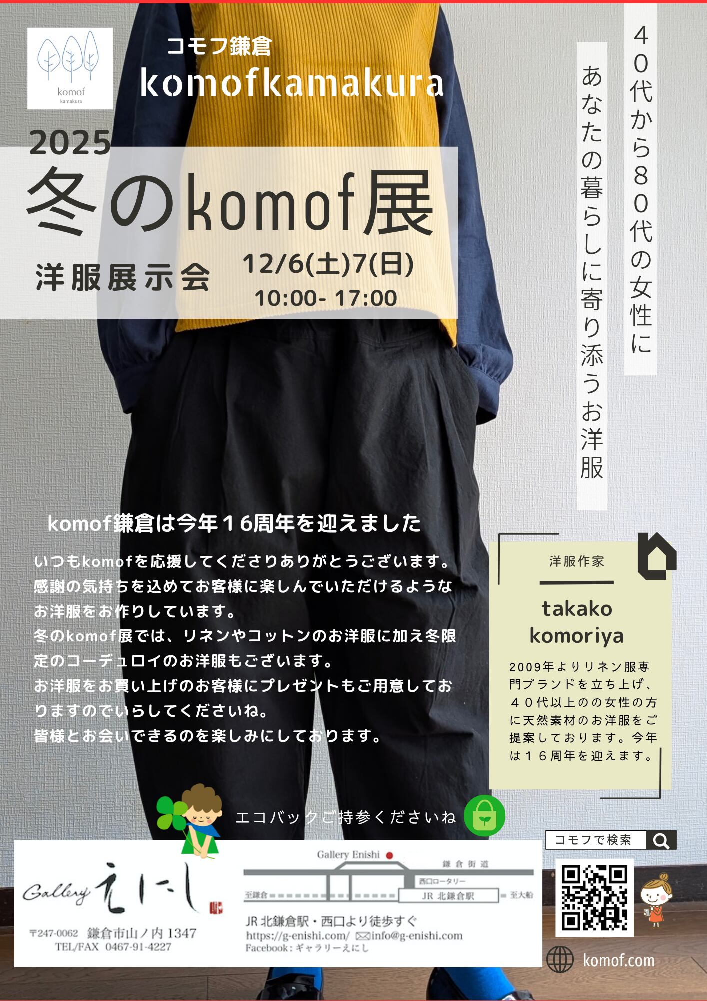komof kamakuraのお洋服は、komofがデザイン製作をしております。