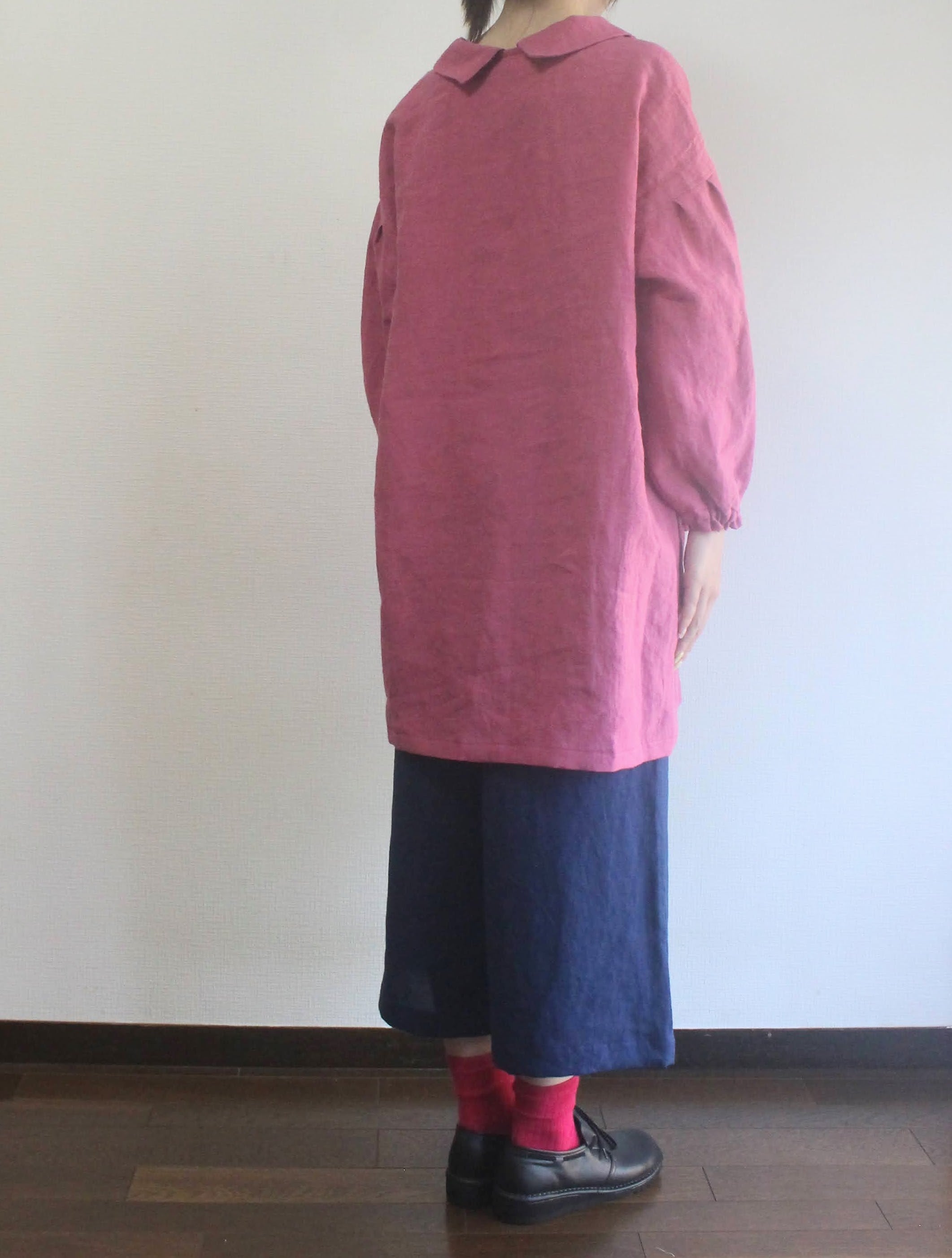 オリジナルの襟付きデザインが上品さを演出し、袖口はゴム仕様で、動きやすさも抜群です。リネン麻100%の高品質な素材は、通気性が良く、夏場でも快適にお過ごしいただけます。特別な日にぴったりな1着です!