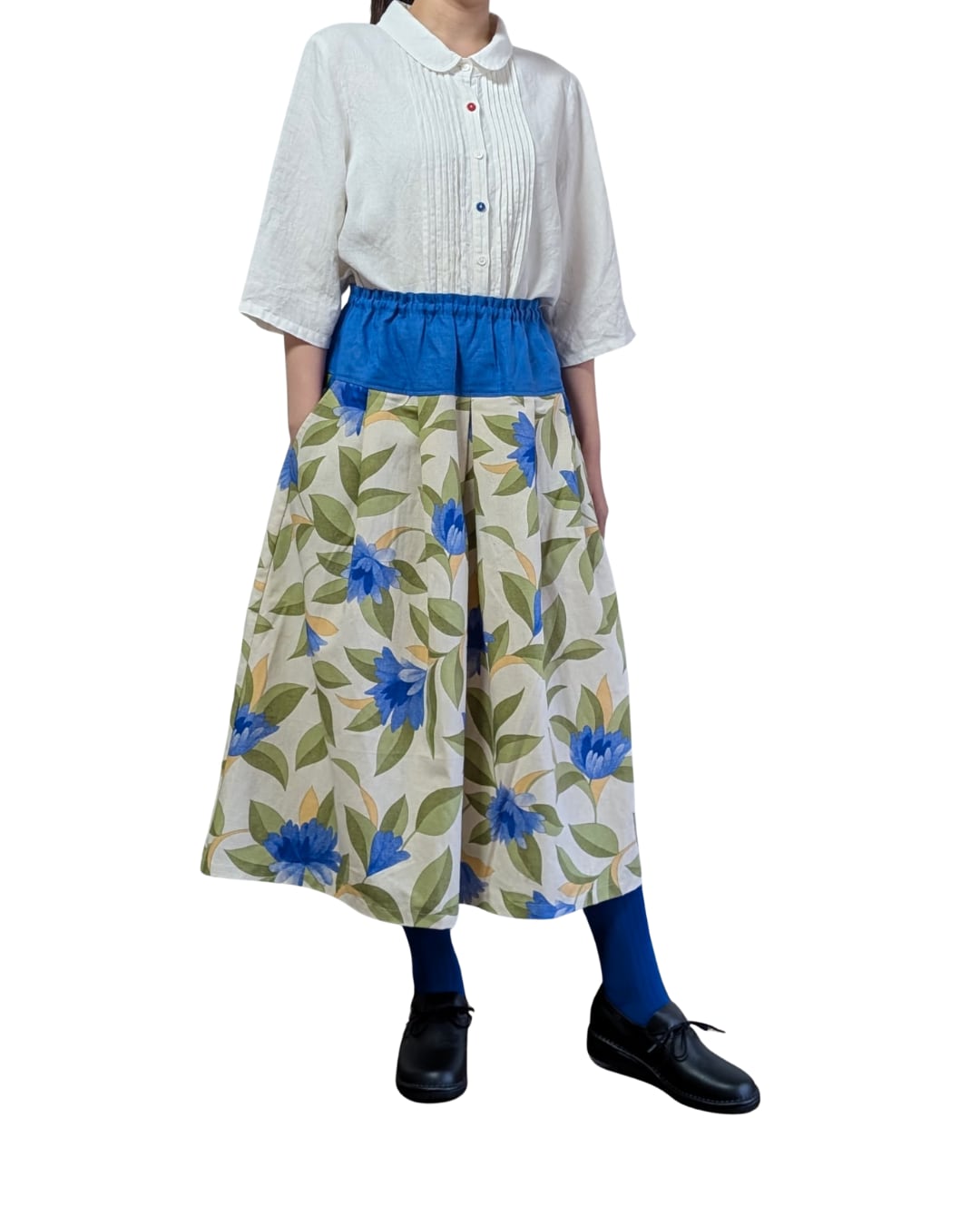 タックスカートブルー花柄・ロイヤルブルーリネン
