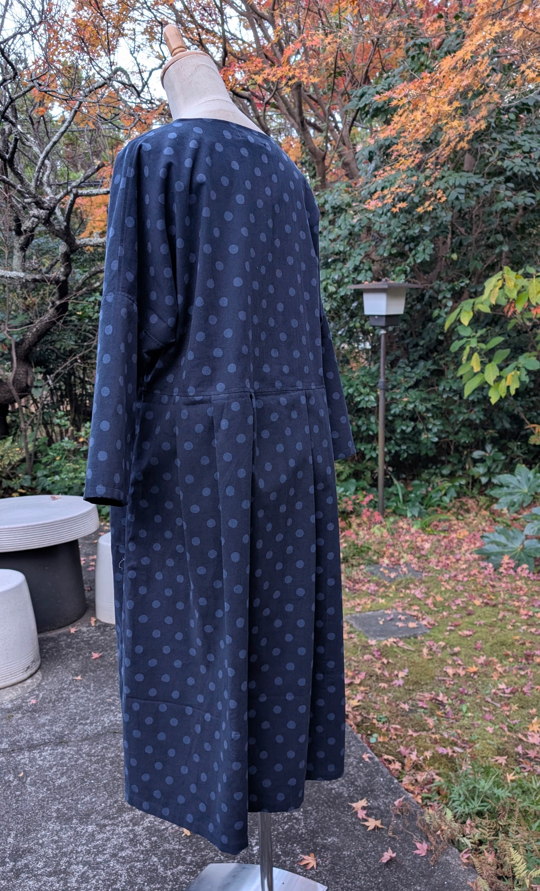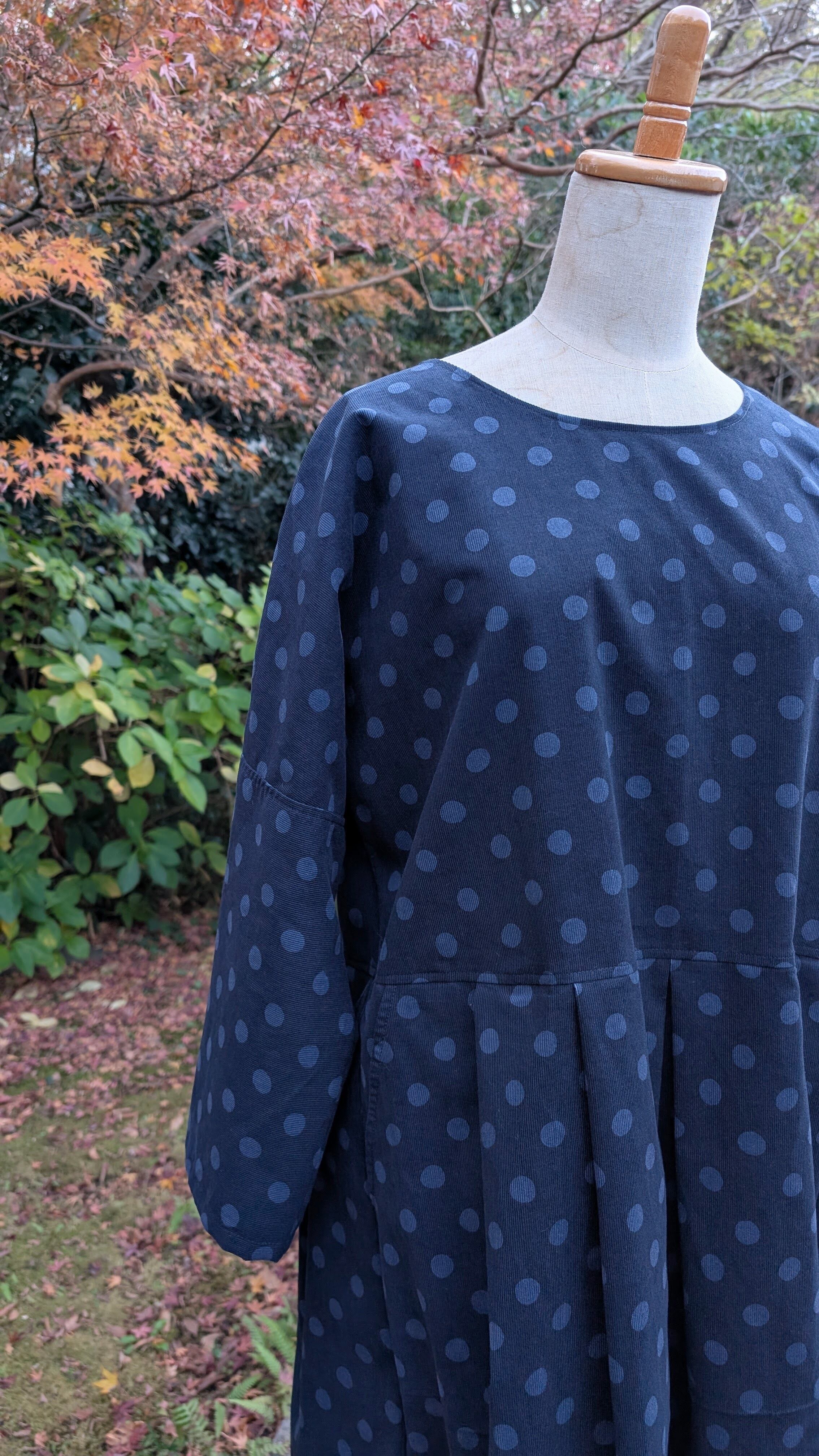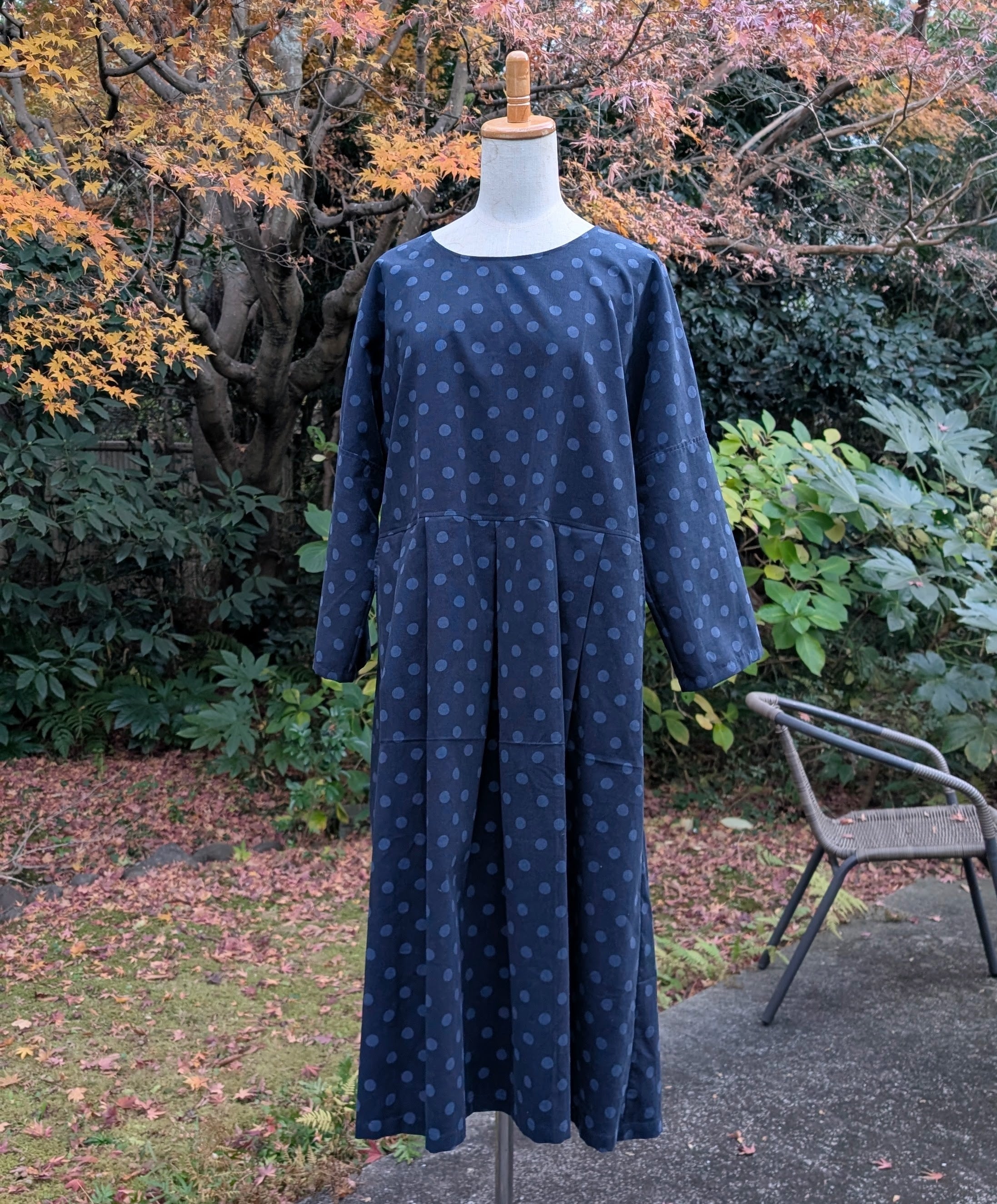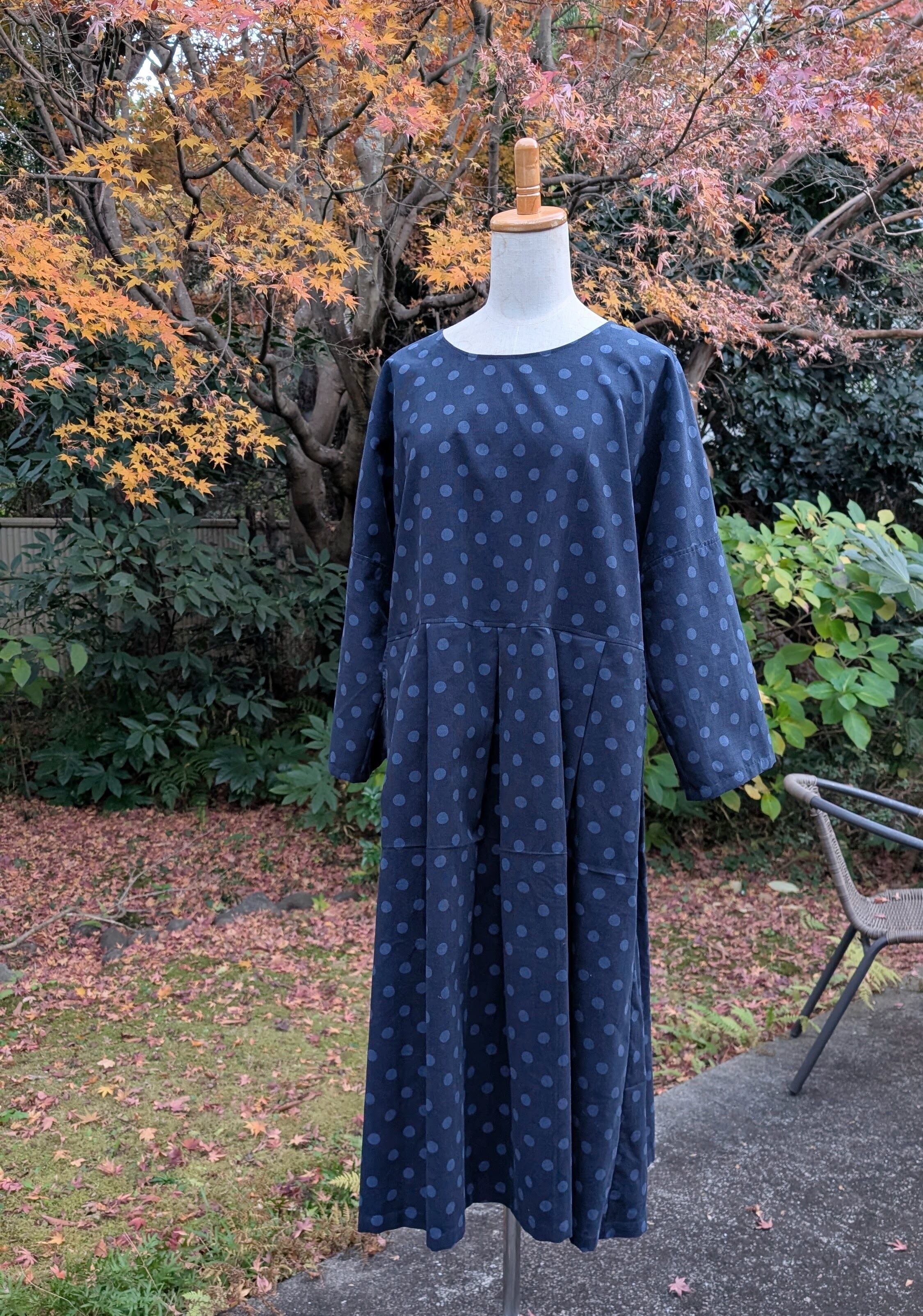 <コーデュロイ紺色ドットのワンピース 54・60>