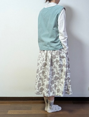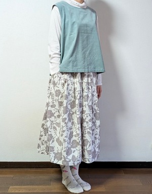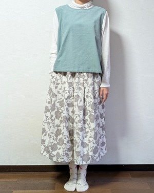 コーデュロイタックスカートは、柔らかな質感のコーデュロイ素材を使用し、しっかりとしたタックスカットが魅力的です。ウエスト部分はゴム仕様で、着用感はとても快適!また、花柄のデザインがちょっとしたお出かけやデイリー使いにも最適です。冬のコーディネートに新たな彩りを加えること間違いなしの一枚です。