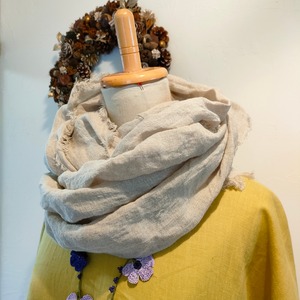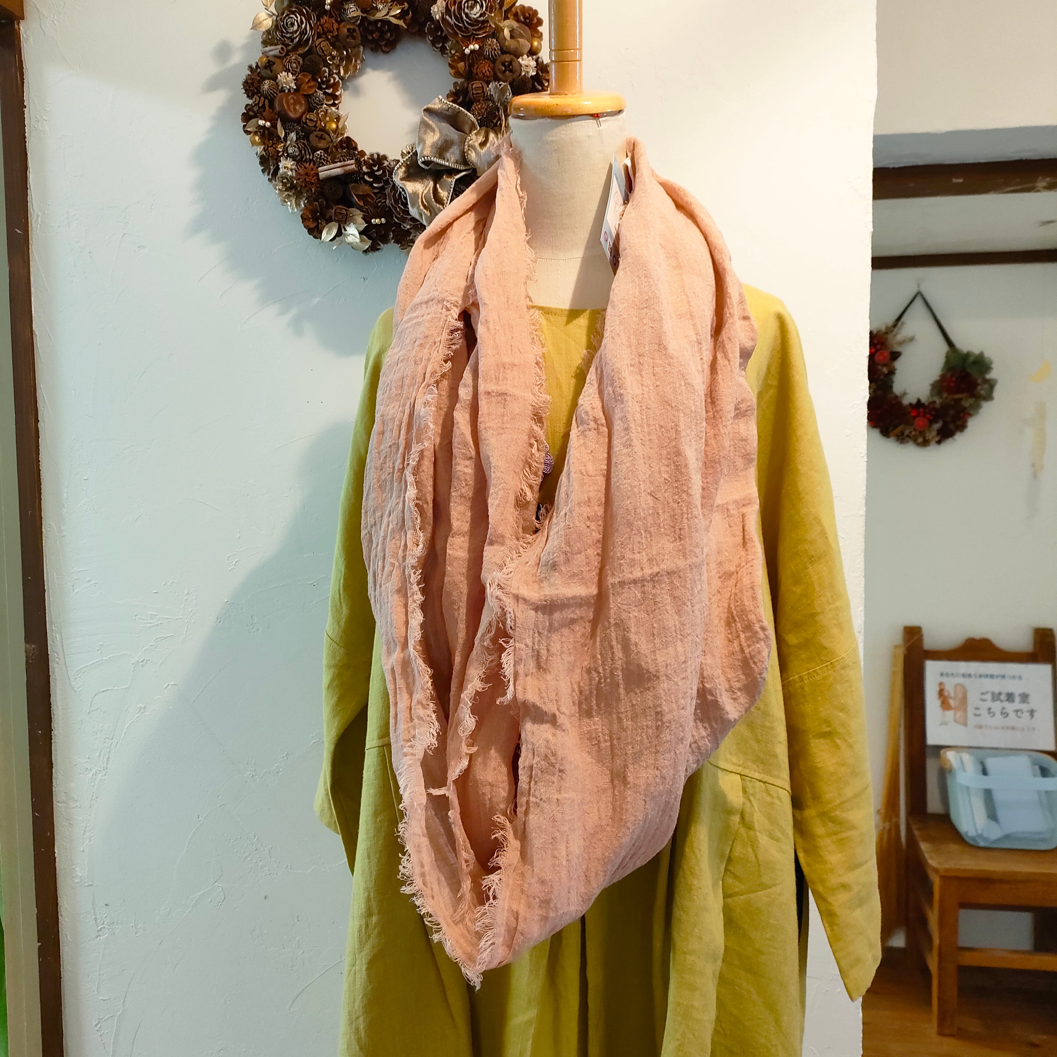 このスヌードは、簡単に巻き方を変えることができるため、自分だけのスタイルを楽しむことができます。また、リネン素材は通気性に優れており、肌触りも良く、これからの季節にぴったりの一枚です。
